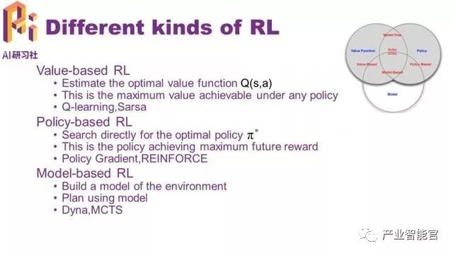 基于策略的强化学习,代表性的有策略梯度和 REINFORE 算法。另外,图(右上)可以看出它们是有交叉的,这些交叉可以是 AC 算法或比较高级的一些算法。