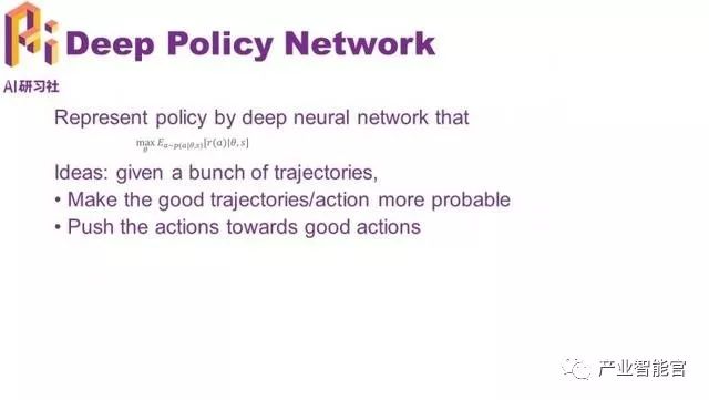 一般来说,我们先对这个应用进行采样,先下一万盘围棋,记忆每一盘的轨迹,并且标记下来,利用大量的样本进行拟合,如何设计奖励机制是很重要的一点,围棋可以利用它的规则进行设计,我们利用这种机制让更好的轨迹更有可能发生。换句话说,我们利用那些奖励机制,发展成我们想要的动作和策略,如果设计得很好,就能很好拟合从状态到设计的拟合。