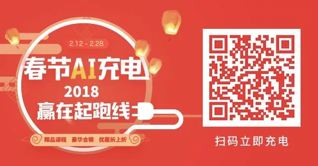 春节将至,黄金充电期即将来临!AI慕课学院为广大AI学习爱好者推出了“春节AI充电”活动,精品AI入门课、热门应用系列课、多重选择!寒假AI学习狂欢,优惠折上折,福利抢不停!春节AI充电 2018赢在起跑线! 详情点戳阅读原文链接或长按识别上方二维码~