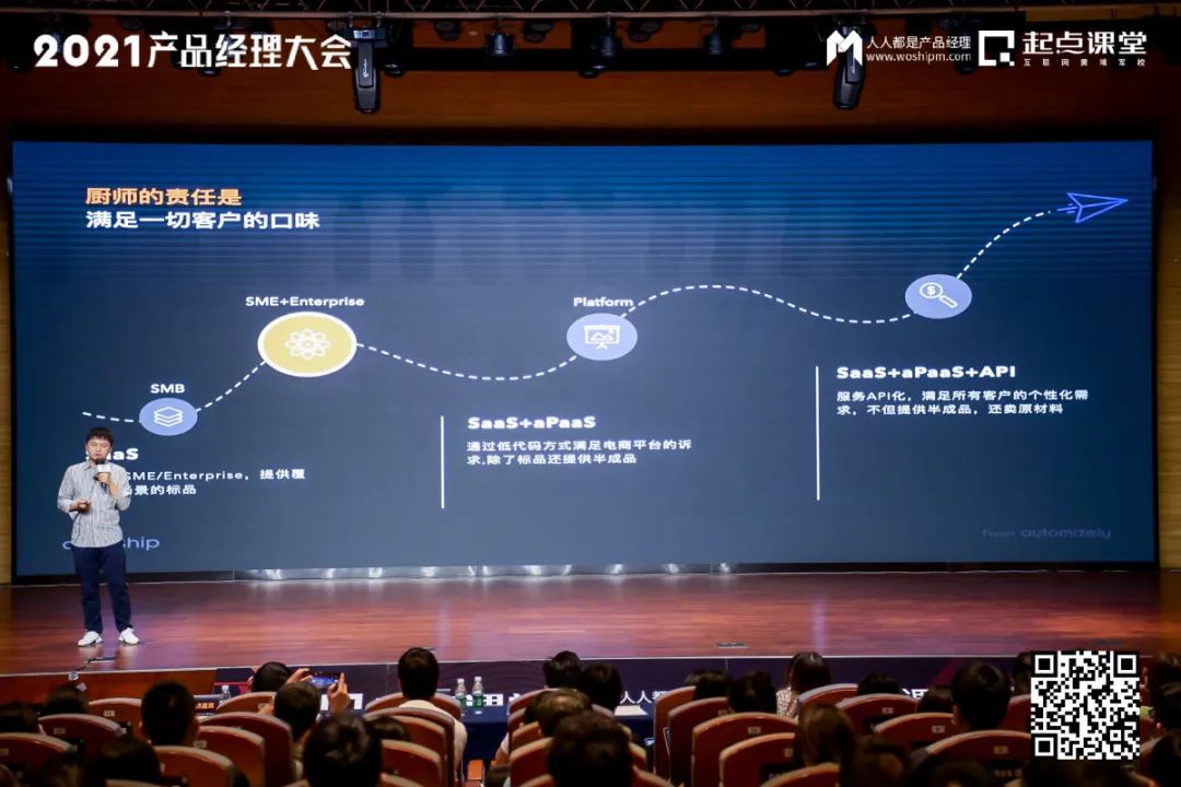 开场他向我们分享 AfterShip 的产品理念,是希望构建出最好的自动化平台,帮助全球电商商家成功。接着,他分析了国际 SaaS 产品的业务,并从中总结出了产品经理必备的能力模型。