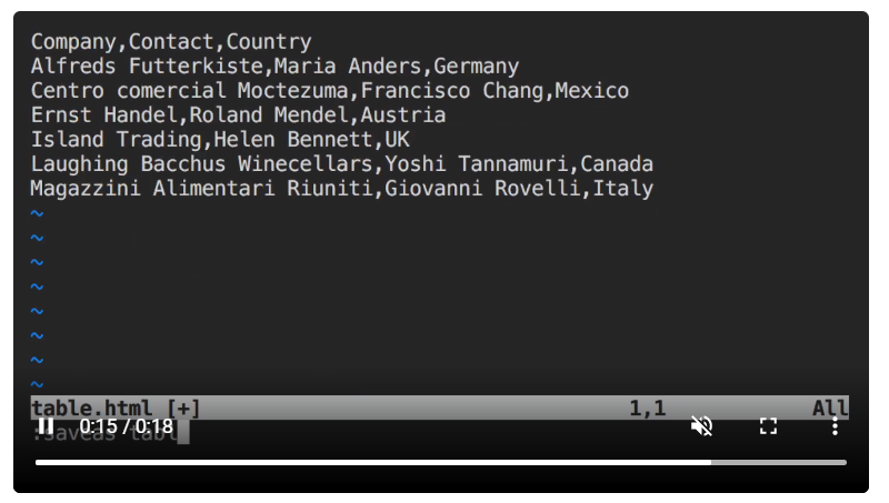 Vim 的宏是它最好的特性之一,在下面这个示例中,我们使用嵌套的 Vim 宏快速地将 html 表格转换成了 csv 格式。