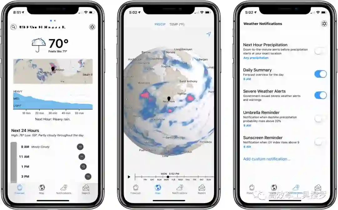 Dark Sky 是一个精准天气预报APP。它支持地图降雨和天气预报功能。