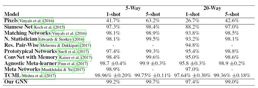 相比已有的一些利用样本间相似性做 Few-Shot Learning 的模型,如 Siamese Net, Matching Network,Prototypical Network,都有提升。另外,论文中证明了后续这三种模型都是 GNN 模型的特例。
