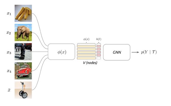 本文提出了用 GNN(GraphNeural Network) 来解决 Few-Shot Learning 场景的分类问题。在 Few-Shot Learning 中,每个类别的训练样本数据较少,如果直接训练一个多分类模型,会由于每个类别的样本较少而无法训练充分。而 GNN 的一个优点在于可以通过节点之间的连接来做信息扩散,如果把每个样本视作图中一个节点,节点之间的边是它们的某种距离度量,那么,就可以把已有label的样本的 label 信息根据节点之间相似性的强弱,有选择的扩散到与之最相似的,需要预测的样本上。这样,新样本在预测的时候,可以利用到各个类别的标注数据,类似于迁移学习,从而缓解了 Few-Shot Learning 中每个类别训练样本较少的问题。