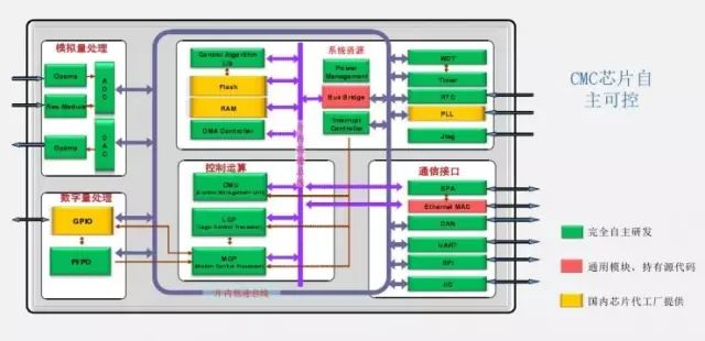 这里面我想给大家再稍微细化地介绍一下,这是我这几年做的一个工作,叫 CMC 控制芯片,什么是 CMC?我们搞控制的都清楚,如果要构成一个控制,必须要有信号输入,我们要有传感信号,最终要输出,要控制。在取得这些传感数据之后,我一定要有一个控制算法,你肯定不能盲目地输出。