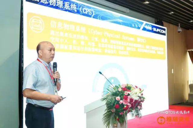 在下午的论坛主题演讲中,浙江中控集团研究院副院长潘再生以《信息物理系统与智能工厂》为题作了演讲。