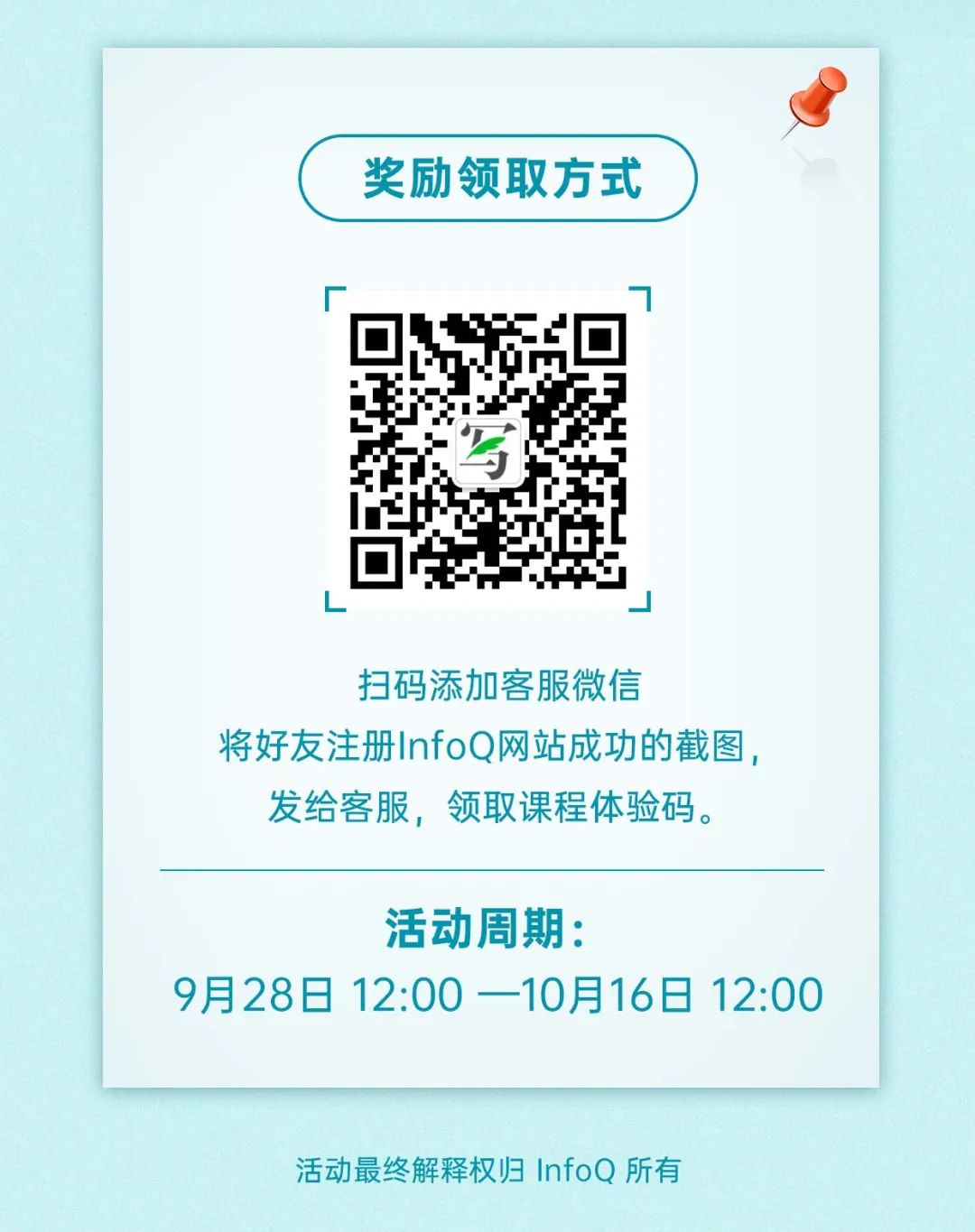 赠人玫瑰,手有余香,好物不独享!希望您在下载阅读之后,也能将此报告传阅给您的好友。为了给您的学习加油助力,我们拿出价值 4999 元的 QCon+ 免费体验一周的福利,奖励无私分享者!