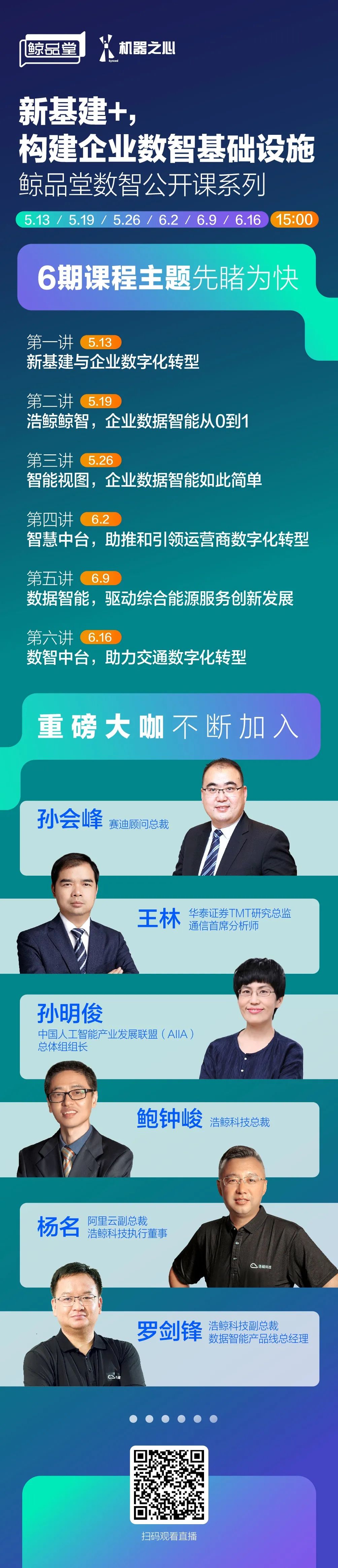 5 月 19 日,「鲸品堂数智公开课」第 2 讲《浩鲸鲸智,企业数据智能从 0 到 1》正式开讲,回顾了上一期课程,我们了解到,在新基建时代,行业数字化转型将进入新的高速发展期,企业的数字化转型技术支撑服务需要依托外部资源,借助外在力量,基于供应链上下游的协同来驱动数字化转型。浩鲸科技,致力于成为行业数字化转型优选合作伙伴,依托浩鲸鲸智产品体系,助力企业构建数据智能的基础设施。第 2 讲视频回顾: