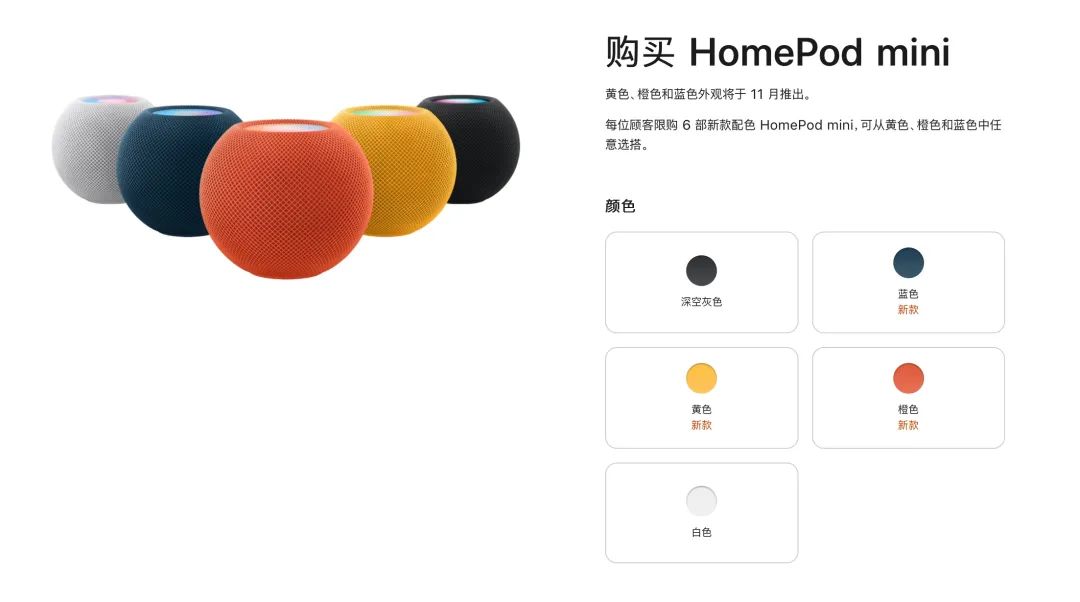 HomePod mini推出三款新颜色 黄橙蓝版本11月推出