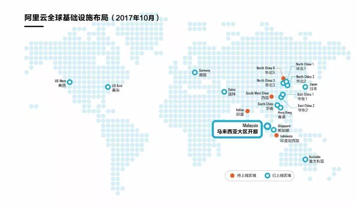 早在2014年,阿里云就在香港设立了首个海外数据中心,并在几年内迅速建成全球“日不落”一张网。覆盖香港、新加坡、马来西亚、迪拜、欧洲、美国西部、美国东部、澳洲等地,且完全官网在线自助售卖,即开即用。目前阿里云可以说已经成为无可争议的第一大中国公有云服务商,已服务20多万的中国用户发展海外市场,而在国际上凭借庞大的全球电商生态、大数据以及中国互联网的规模优势也打造出了属于自己的天地。