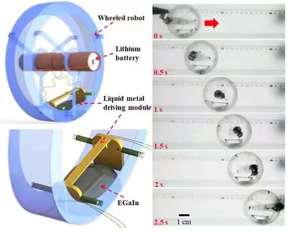 中国科学技术大学精密机械与精密仪器系副教授张世武研究团队、澳大利亚伍伦贡大学教授李卫华研究团队和苏州大学机器人与微系统中心副教授李相鹏研究团队组成的联合研究组,设计了基于镓基室温液态金属的新型机器人驱动器,首次实现了液态金属驱动的功能性轮式移动机器人。近日,该成果以 A Wheeled Robot Driven by a Liquid‐Metal Droplet 为题,发表在《先进材料》杂志上(Adv. Mater. 2018, 201805039)。