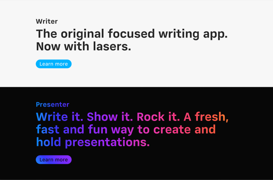 iA Presenter 的介绍页面延续了文本为主的家族风格,很好地传达了设计理念: