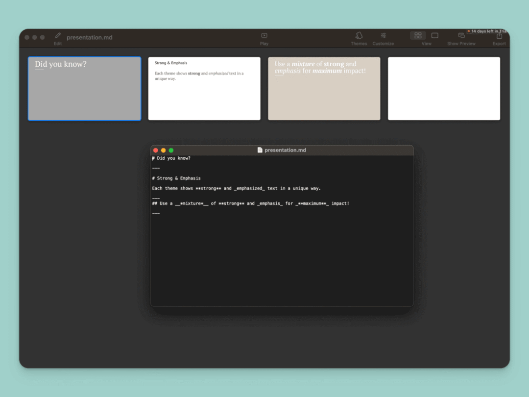 尽管仅看功能描述,iA Presenter 的功能似乎并不特别新颖——市面上已经有了很多同类型的软件。但经过几天的体验,我愿意继续将它作为输出工具来使用,也非常推荐大家尝试。