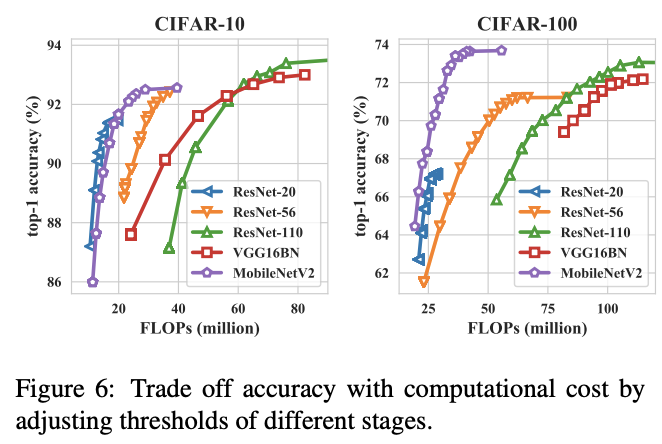 为准确率, 为动态推理的平均资源消耗。为了与其它动态推理研究比较,采用FLOPs表示计算消耗, 为平衡准确率和资源消耗的超参数。