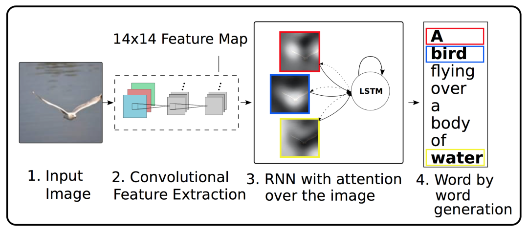[4]ICML2015: Show, Attend and Tell- Neural Image Caption Generation with Visual Attention: https://arxiv.org/pdf/1502.03044.pdf