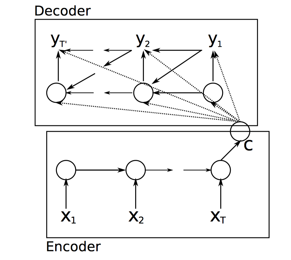 是上下文向量,是关于 的函数。 是输入的最大长度。最简单的, ,即最后一个时间步得到的encode作为上下文向量。