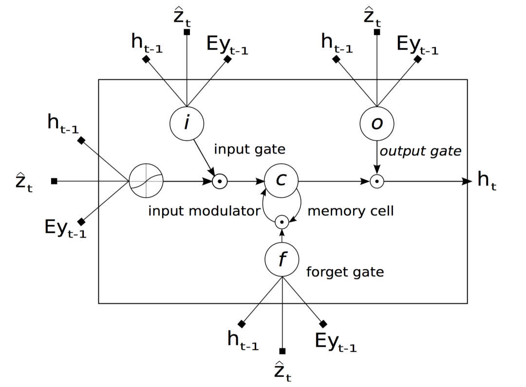 使用LSTM来解码并生成描述词序列,LSTM结构单元如下: