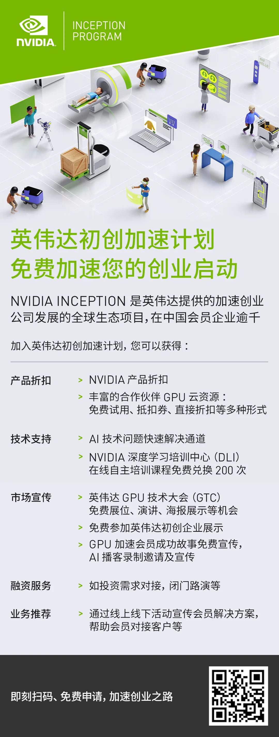 另外,对 NVIDIA 初创生态感兴趣的创业企业,可通过扫描下方海报进行关注,获得助力与赋能。
