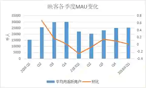 业绩增长陷入瓶颈或许折射出映客核心产品——映客直播的现状。相比于游戏直播,秀场直播容易造成视觉审美疲劳,后期增长乏力。从映客给出的2016年Q1-2018年Q1的数据可以看出,彼时,映客直播MAU增长就呈现出放缓趋势。