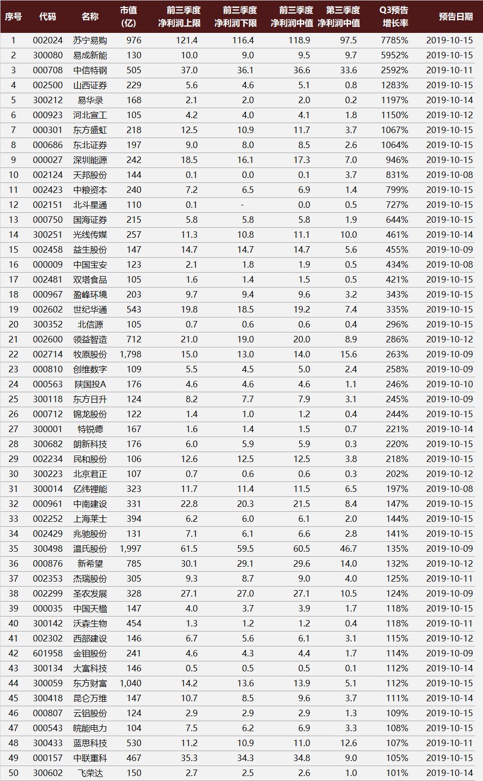 完具体的公司后,最后再补一张三季度业绩预增幅度较大的公司名单。