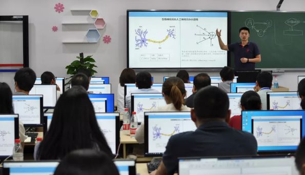 培训期间,培训班的师生们参观了华中师范大学第一附属中学的人工智能实验室和湖北省武昌水果湖第一小学的人工智能体验室,并聆听华中师范大学第一附属中学信息中心主任张战胜和华中师范大学第一附属中学技术教研组组长孙俊峰的主题讲座。