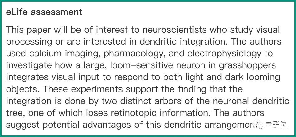 例如显示的“eLife assessment”,其内容就是审稿人和编辑对这份预印本研究的想法和摘要。