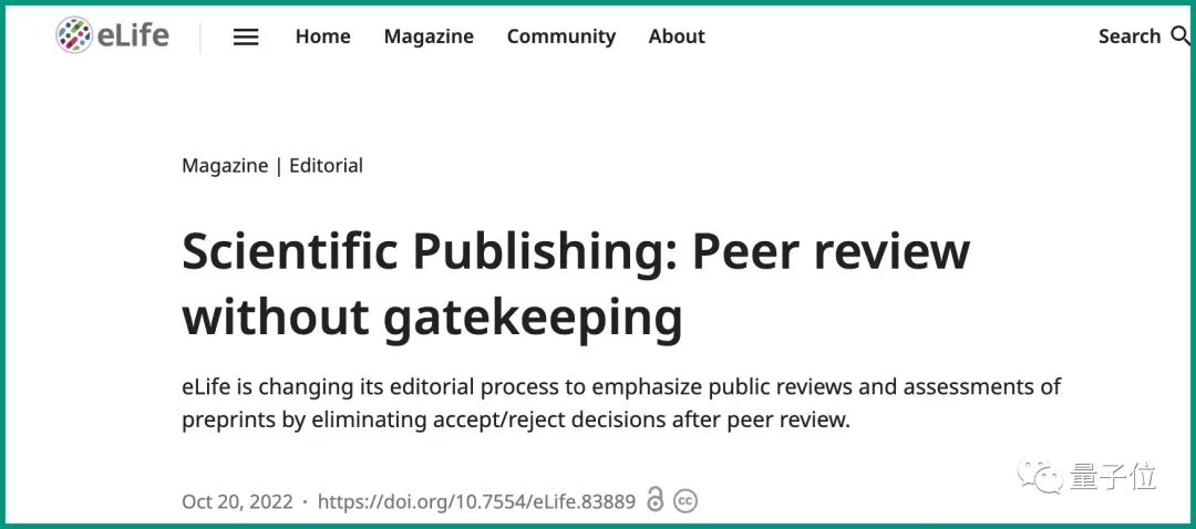 并且据官方介绍,从2023年1月开始,这将是eLife唯一的运作模式(此前保留过传统出版模式)。