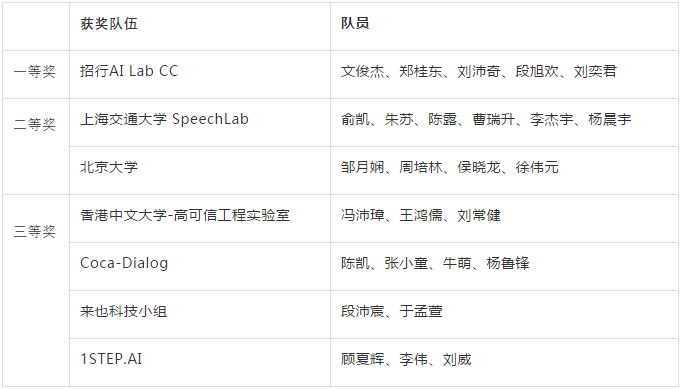经过近4个月的激烈角逐,来自招行AI Lab、上海交通大学、北京大学、香港中文大学等队伍获得了奖项。完整的获奖名单如下: