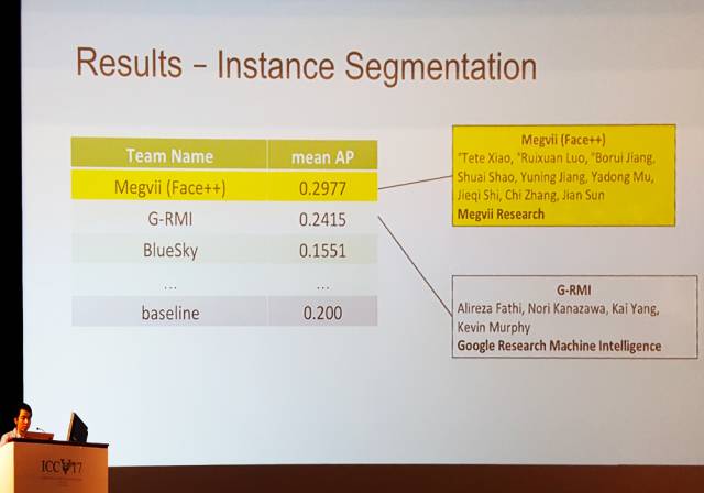 当地时间10月29日上午,在意大利威尼斯召开的计算机视觉国际顶级会议 International Conference on Computer Vision(ICCV 2017)的 “Joint COCO and Places Recognition Challenge” Workshop 中公布了 COCO 及 Places 竞赛排名情况。