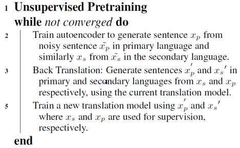 其中,x_p/x_s 分别表示 primary/secondary 对应的句子,算法包含三个步骤(三个步骤的目的均是通过训练调整模型 W_E/W_D 参数):