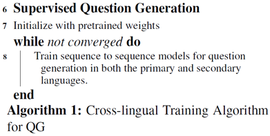 2) 使用 primary/secondary 数据分别训练对应语言的生成模型(通过 secondary 语言的 QG 训练过程对共享编码/解码的权重参数进行微调,从而提升 primary 语言的 QG 性能)