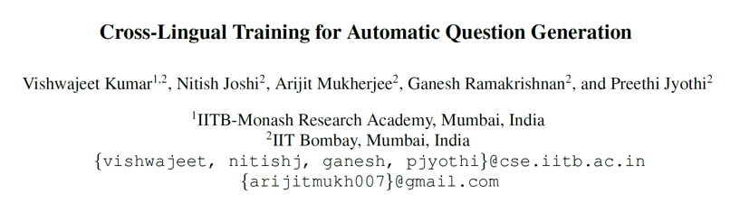 2. HiQuAD 语料的构建过程并不明确,从实验上看,小语种语言问题的生成依然需要小规模的 QG 标注语料参与训练,但是作者对于HiQuAD的构建过程仅描述了获得问题之后文本的获取方式。但问题本身的来源,是否使用了小规模的印度语QG标注数据等细节,未做说明