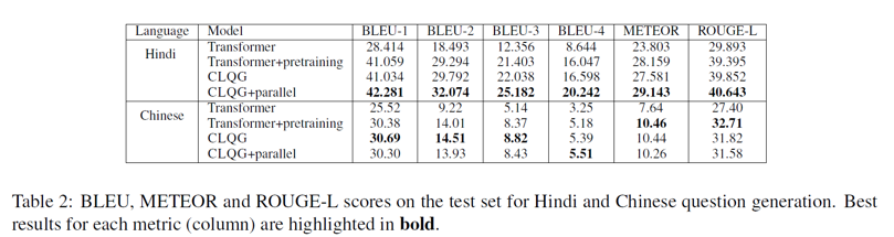 3. CLQG:使用双语数据预训练/问题生成的 Transformer+ pretraining;