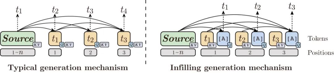 针对训练和解码中 存在的差异,Infilling Generation通过在decoder端每个字符后填充符号[ATTN]作为 来汇聚上文表示,统一了训练和解码中 的差异: