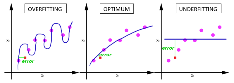 随着 epoch 数量增加,神经网络中的权重的更新次数也增加,曲线从欠拟合变得过拟合。