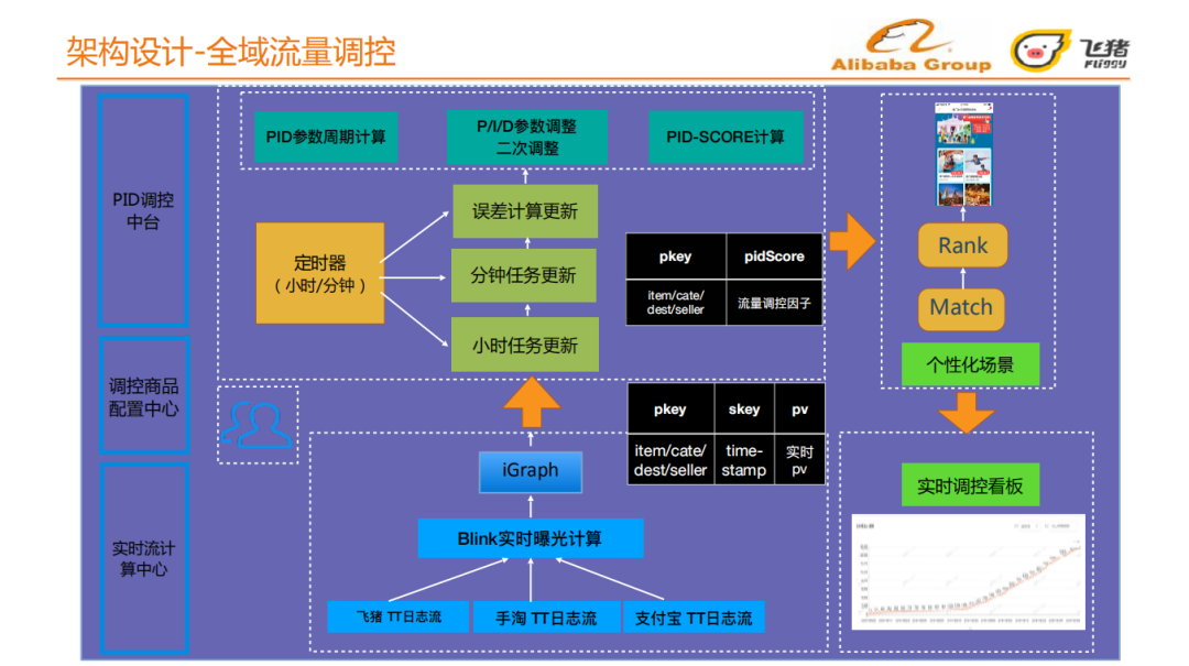 实时流计算中心:监控飞猪、手淘、支付宝三端的实时行为,根据实时日志流获取不同物料不同粒度下的实时PV,不同物料包括:不同item 、不同类目、不同目的地、不同卖家;