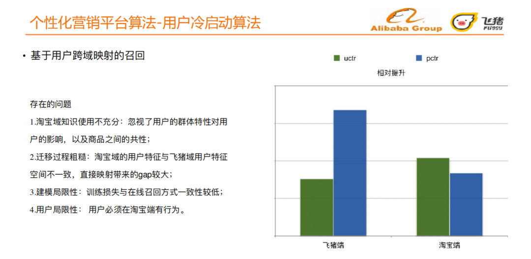 上面的方法在飞猪端带来1到2个百分点的uctr提升,在淘宝端带来了2个百分点的uctr提升。但是同时也存在以下几个问题: