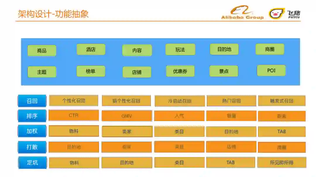 排序:综合考虑多个维度,如点击率CTR、成交量GMV、人气、销量、距离等;