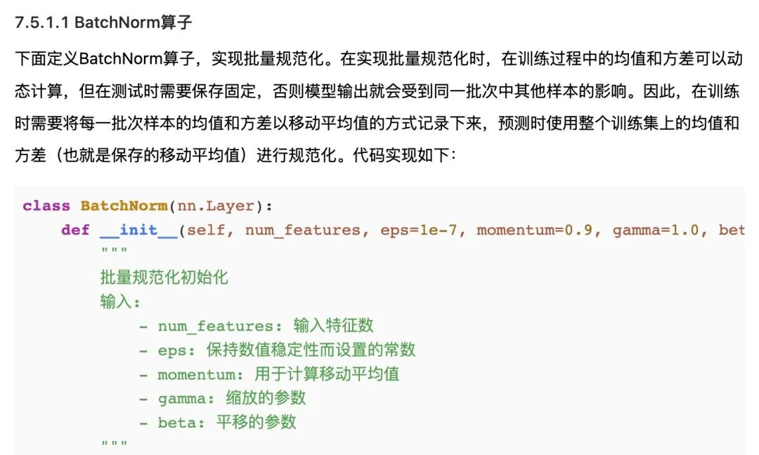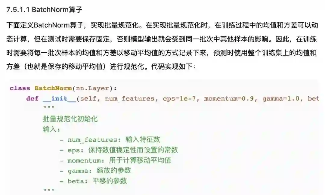 其中很多知识点,都会配上底层代码,帮大家稳稳拿捏,比如BatchNorm: