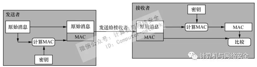 原始消息,连同摘要消息一起到了接收端后,再采用相同的方法对所接收到的原始消息(在带密钥运算的情况下,还要包括双方共知的密钥)进行“压缩”,看生成的消息摘要是否与随着原始消息一起发送过来的消息摘要一致,一致则认为所接收的消息是完整的,在传输途中没有被非法篡改。