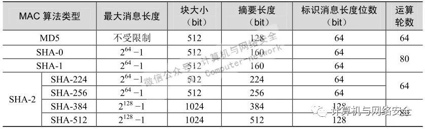 SHA(Secure Hash Algorithm,安全哈希算法)主要适用于数字签名,也是一种不可逆的MAC算法,但比MD5算法更加安全。目前它有三种主要的版本,即SHA-0、SHA-1、SHA-2和SHA-3。其中SHA-2和SHA-3版本中又有多种不同子分类,如在SHA-2中又根据它们最终所生成的摘要消息长度的不同又包括SHA-224、SHA-256、SHA-384和SHA-512等几种。