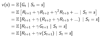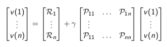 。其理由是收获的期望等于收获的期望的期望。下式是针对MRP的Bellman方程: