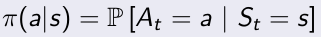 为对过程中的某一状态s采取可能的行为a的概率。用