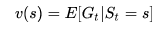 定义是在MDP下的基于策略π的状态价值函数,表示从状态s开始,遵循当前策略时所获得的收获的期望;或者说在执行当前策略π时,衡量个体处在状态s时的价值大小。数学表示如下: