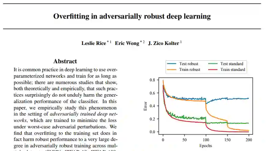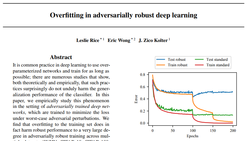 对“对抗性训练”进行研究的论文标题是“Overfitting in adversarially robust deep learning”,第一作者是来自卡内基梅陇大学的研究员Leslie Rice。