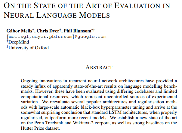 对语言翻译进行研究的论文名为“On the State of the Art of Evaluation in Neural Language Models,此论文是DeepMind和牛津大学合力完成。