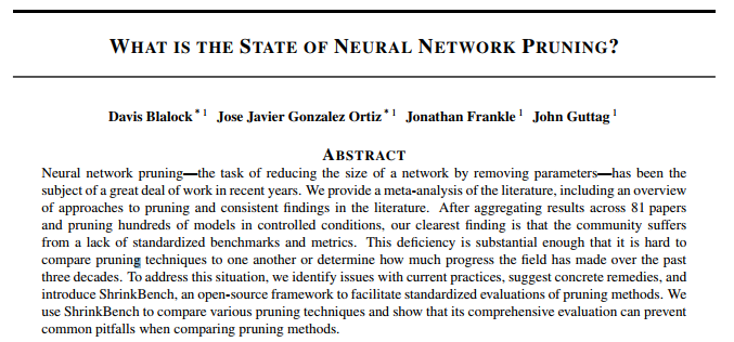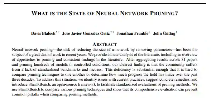 对神经网络剪枝技术进行对比分析的论文是“What is the State of Neural Network Pruning?”
