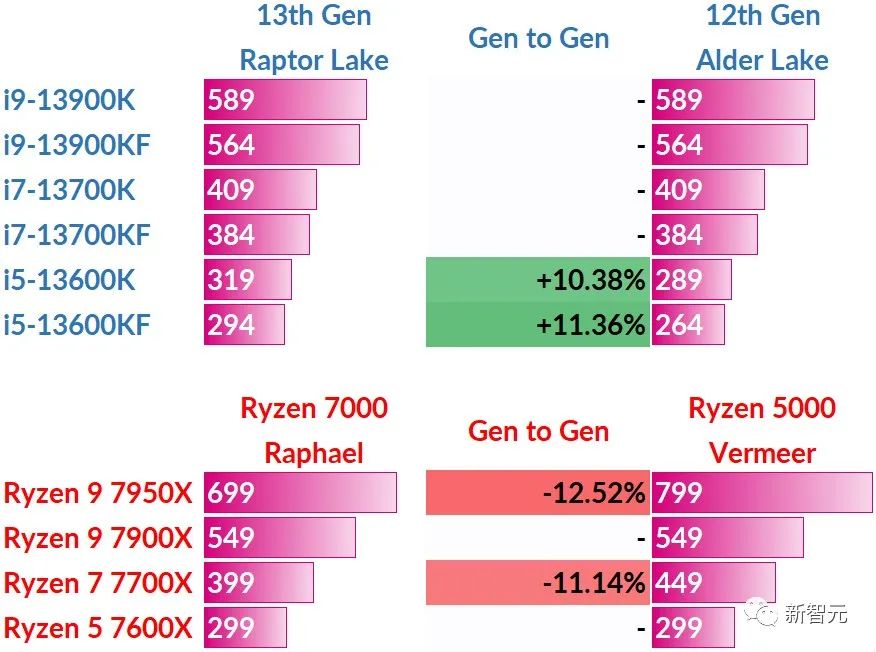 借用「剧毒术士马文」的一张图,这次除了定位中端的i5比12代涨了10%以外,其他两款都和上代一样,加量不加价。