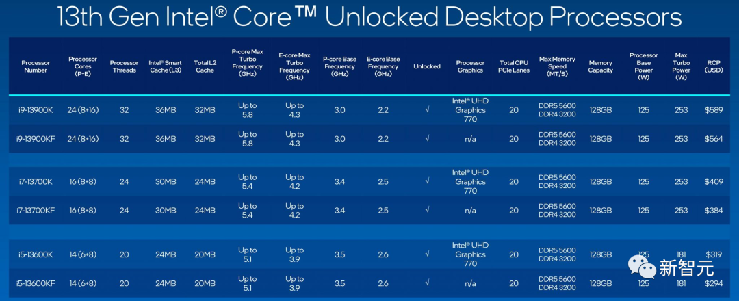 i7-13700KF,16核心24线程,最高睿频5.4GHz,预售价3299元