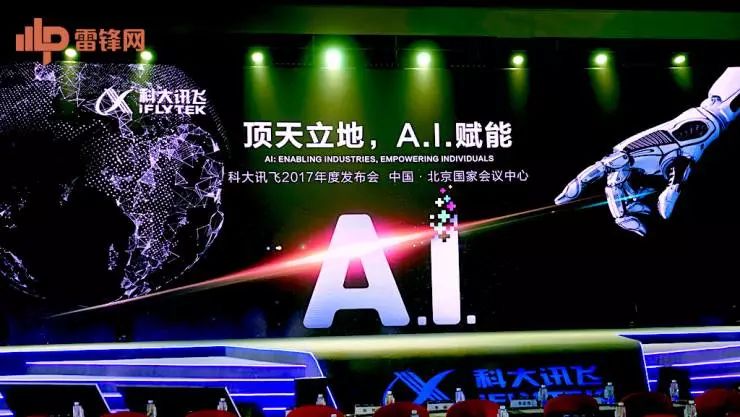 11 月 9 日,科大讯飞在北京国家会议中心举行 2017 年年度发布会,这次发布会的主题是“顶天立地,A.I. 赋能”。